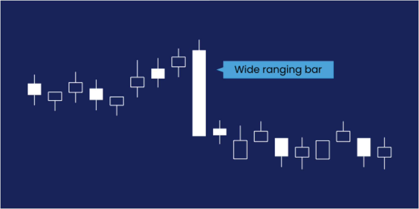 کندل های با دامنه وسیع (WRBs)، که به آنها میلههای بلند نیز گفته میشود، کندلاستیکها یا میلههایی هستند که طول آنها به طور قابل توجهی بیشتر از دیگر کندل های موجود در چارت (حداقل 2-3 برابر طول کندلهای معمولی) است.